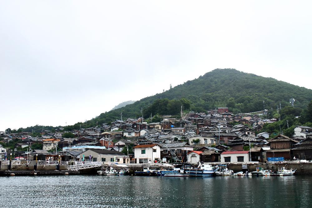 L’île voisine, Ogijima, signifiant “l’île de l’arbre mâle”, possède un village construit selon des méthodes bien particulières. Les maisons sont érigées sur d’immenses murs de pierre afin de les préserver de la pente abrupte ainsi que des fortes rafales de vent. Ces murs de pierre réduisent considérablement l’espace des ruelles, les rendant très étroites, ce qui leur donne un charme particulier. On appel cette île, "l'île aux chats", du fait que bien que leur nombre ait chuté, ces félins la peuplent en grand nombre et font la joie des touristes qui viennent les admirer et leur donner à manger.
