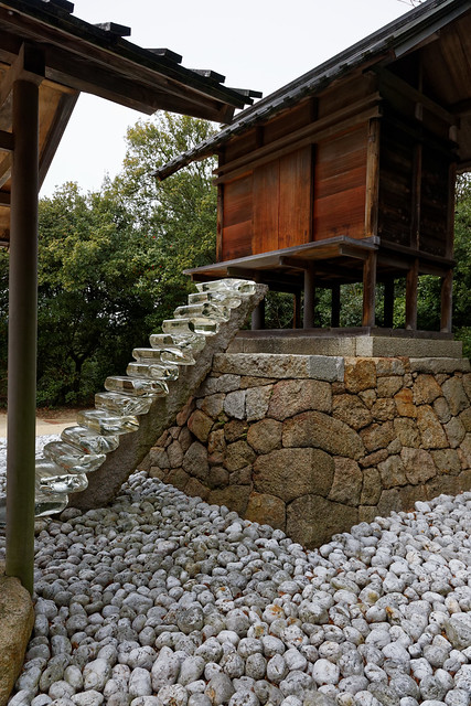 Le sanctuaire Go’o (2002) : l’artiste Hiroshi Sugimoto rehabilita ce petit sanctuaire de l’époque Edo en proposant un escalier de verre unissant symboliquement la terre et le ciel.