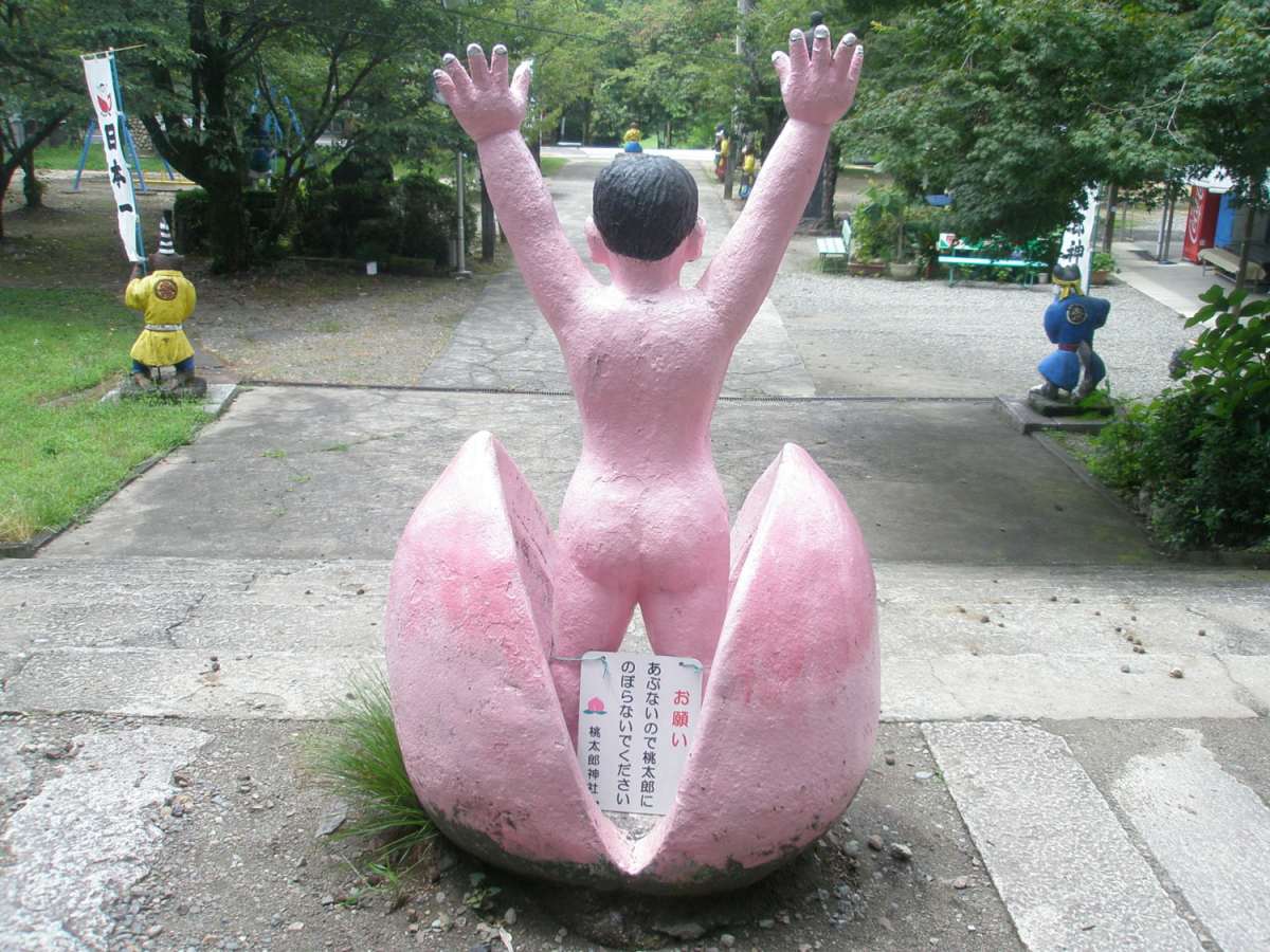 Cette histoire, datant de plusieurs siècles, a bien sûr connu de nombreuses modifications et sa trame narrative peut changer d’une région à l’autre, mais il n’est pas un enfant japonais qui n’en connaisse la chanson. Le conte se tient supposément dans la ville d’Okayama, où l’on peut aujourd’hui goûter de très bonnes pêches et notamment acheter des Kibi Dango, mais aussi voir les différents lieux de l’histoire et une sculpture de Momotaro! L’île d’Onigashima serait supposément Megijima dans la préfecture de Kagawa, l’une des îles participant à la Triennale de Setouchi sur laquelle on trouve une grotte mystérieuse dont la légende veut qu’elle aurait été creusée par des démons il y a fort longtemps…