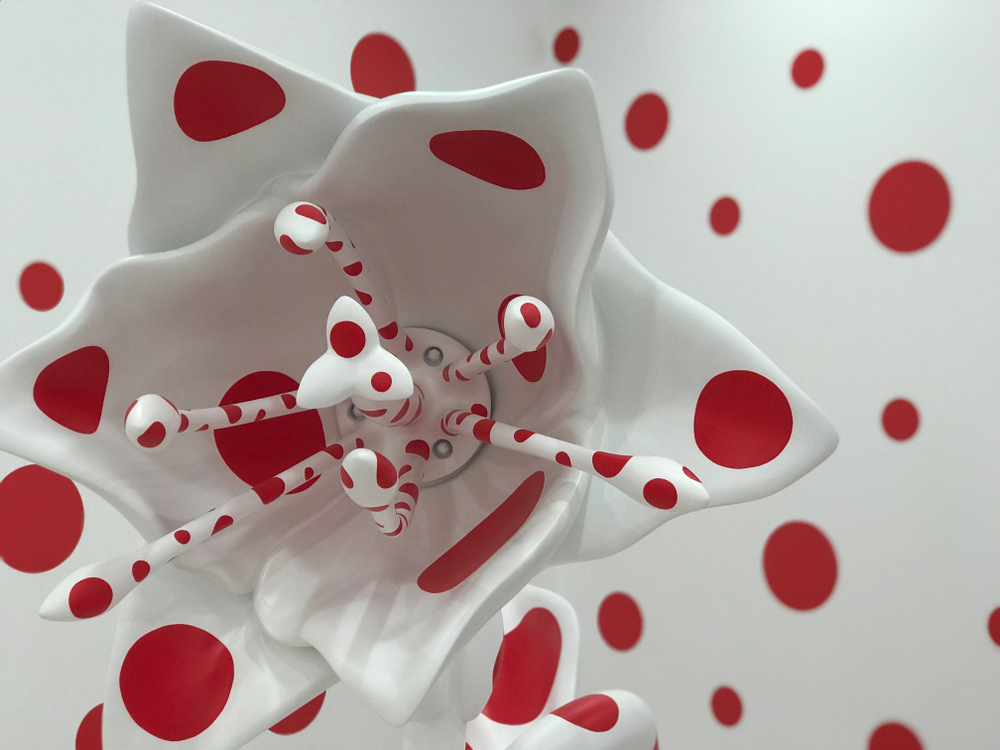 Si il y a une chose qui faut retenir sur cette artiste japonaise, et qui est assez évident rien qu'en apercevant son travail, c’est qu’elle aime les motifs à pois. Il y en a partout dans ses oeuvres. Vous pouvez en admirer plusieurs dans sa ville natale à Matsumoto où un musée lui est consacré, ou encore une de ses toiles au Musée d’art moderne de Tokyo.